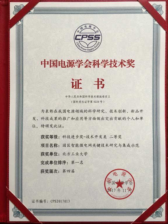 由我院“新能源系统及工程”科研创新团队负责人周京华教授主持申报的“园区智能微电网关键技术研究与集成示范”项目获科技进步奖-技术开发类二等奖。 该项目开发出具有完全自主知识产权的大功率并网装置、电能质量治理装置、储能变流器、智能微电网先进能效管理系统。将所取得的关键技术与相关企业合作,建立了多个智能微电网示范工程和项目,进一步推动了分布式光伏的高效利用,加快了行业的产业化推广及应用进程,促进社会向绿色、环保、节能方向持续发展,创造了较大的经济效益与社会效益。项目成果被中国电工技术学会组织的专家委员会鉴定为“国际领先”水平。