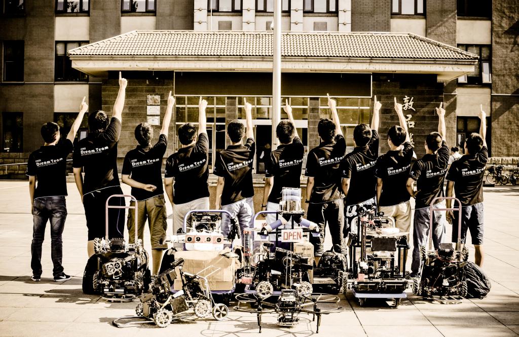 2014年,刚升入大二的张潞、李静威等几名对机器人有着浓厚兴趣的男生在学院毕松老师的悉心指导下,从零开始,一边学习控制,一边自己焊电路板,探索设计机器人。一次次失败,不屈不挠的爬起来继续前行;失败后的心酸和成功后喜悦的泪水浇筑出他们通往胜利的大道。就这样,DreamTeam第一次在全国大学生精英面前亮相。